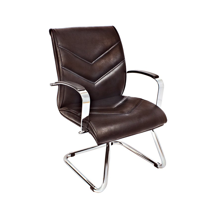 Misafirlerinizi ağırlarken hem konforlu hem de prestijli bir atmosfer oluşturmanızı sağlar. Hafif eğimli sırt yapısı ve geniş oturum alanı, kısa ve orta süreli oturumlarda ideal destek sunar. Krom kolluklar üzerindeki deri detaylar, görsel bütünlüğü tamamlar.